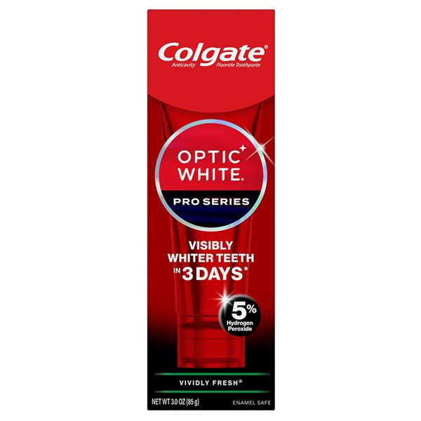 Colgate Optic White Pro Series is an expert level whitening toothpaste for a vibrant glow. With Colgate?s patented 5% hydrogen peroxide formula (our highest level in an over-the-counter whitening toothpaste), this teeth whitening toothpaste is whitening that works.
