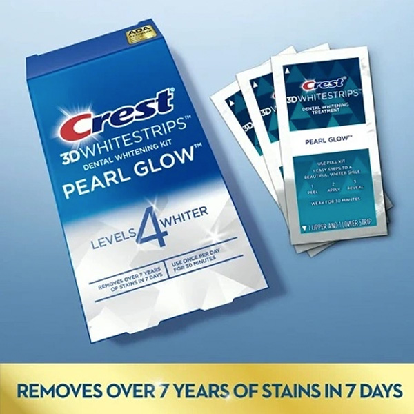 Simply apply Crest 3DWhitestrips Pearl Glow for 30 minutes a day for 7 days. This pack includes 14 teeth whitening strips, 7 for your top teeth and 7 for your bottom teeth, to be used over the course of 7 days.