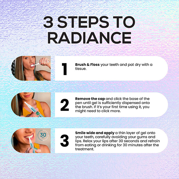 Precision Targeting – With a fine and focused tip brush, the gel can be effectively applied to targeted areas on your teeth. Make every visible part of your smile is whitened!